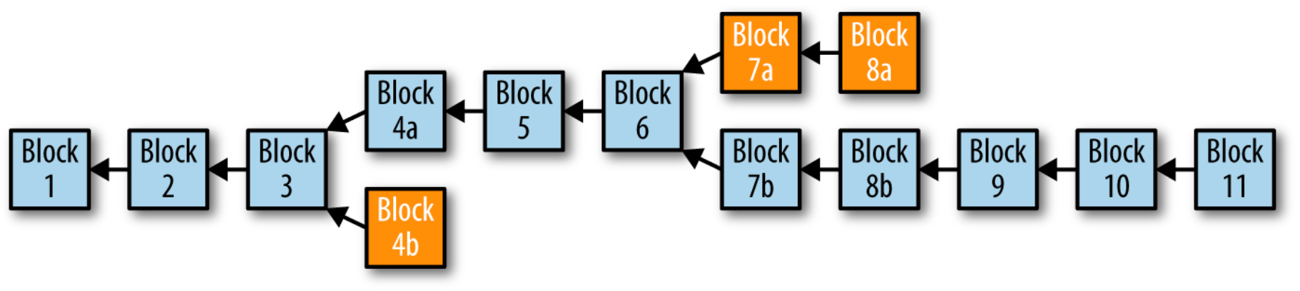 orphan block 이 존재한다는 것은 이 블록이 속한 체인이 대세 블록체인이 되지 못했다는 뜻이고, 그 블록 안에 포함된 트랜잭션들은 유효하다고 인정받지 못한다.