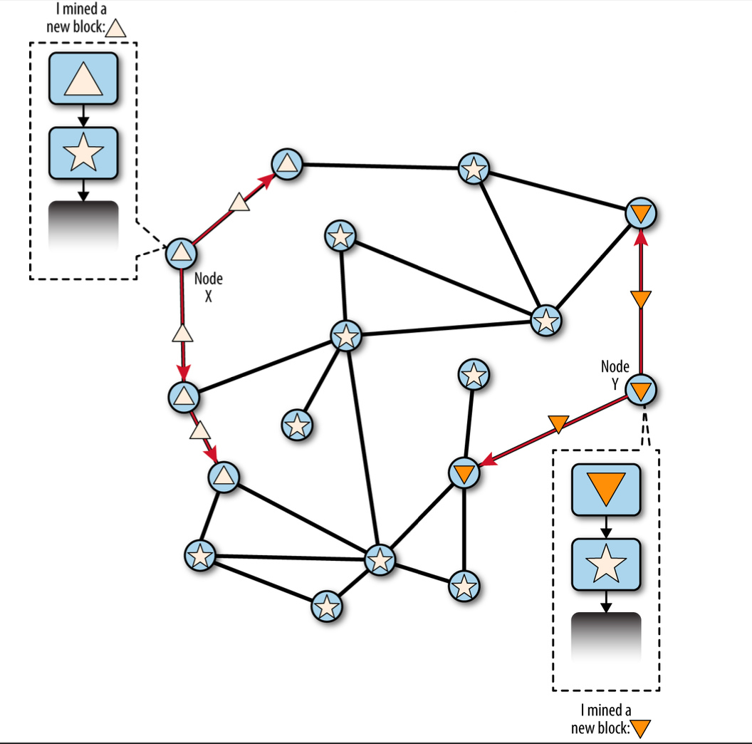 해당 노드는 자신이 채굴한 블록이 인정받기를 원하므로, 신속하게 인접한 노드에게 뿌린다.