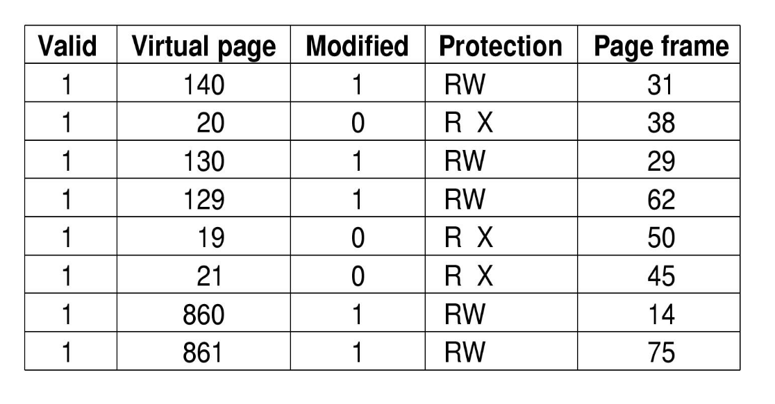 4. 만약 TLB에 존재하지 않으면 이를 가리켜 'Miss' 라고 판단한다. MMU는 miss를 발견했을 때, 페이지 테이블에서 변환될 page frame의 번호를 읽어온다. 그리고 TLB가 가득찼다면 엔트리를 하나 쫓아내고, 방금 읽어온 페이지 테이블 엔트리를 쫓아낸 자리에 넣어둔다. 엔트리를 쫓아낼 때는, 그 엔트리에 설정된 modified bit 를 복사해서 메모리에도 반영해준다. (이 값은 변경되었을 수 있기 때문이다.)