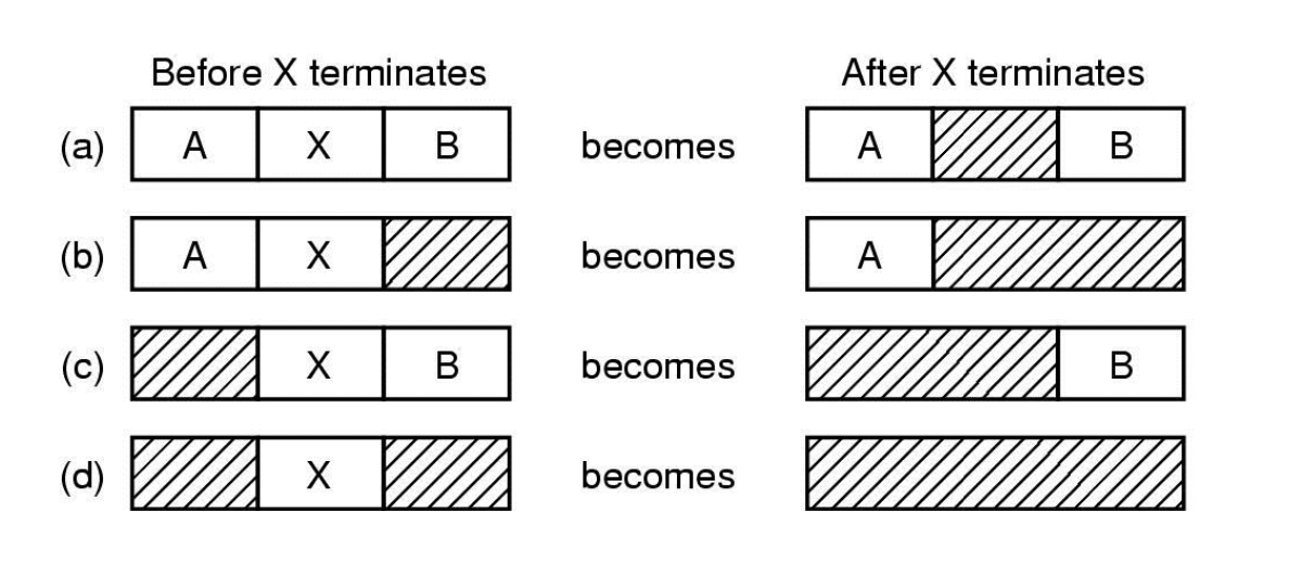 일단 기본적으로 낮은 주소부터 시작해서 전체 노드를 훑으면서 해당 프로세스가 요구하는 크기 이상의 H 에 할당하는 것은 자명하다.