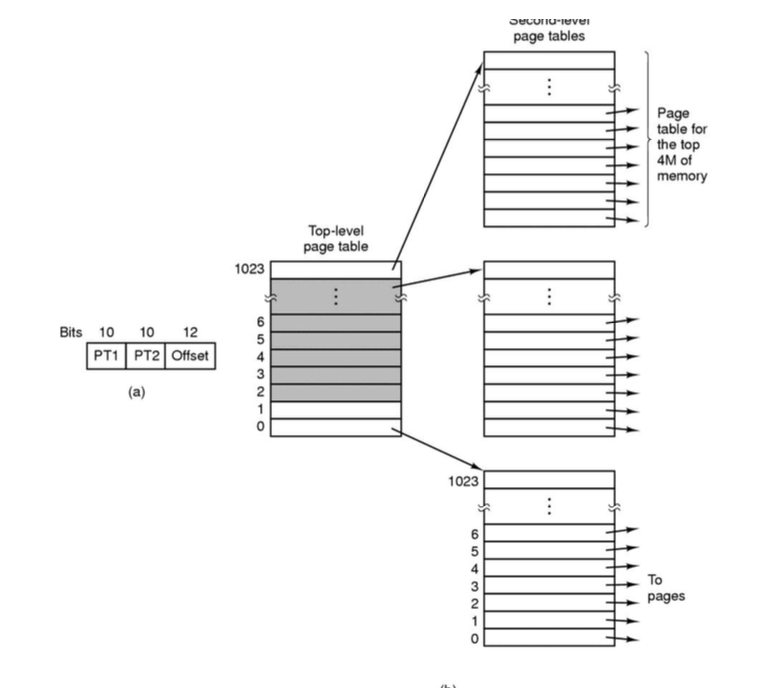 만약 어떤 프로세스의 텍스트 세그먼트 / 데이터 세그먼트 / 스택 세그먼트 크기가 각각 4MB 라고 할 때, 각각 1024개 엔트리를 가진 페이지 테이블로 표현하게 되면 Top-Level 1024개 엔트리를 공통으로 두는 것을 포함하여 총 4096개 엔트리로 하나의 프로세스를 표현할 수 있다. 이는 각 세그먼트가 4MB 일 때를 가정한 것이고, 만약 세그먼트의 크기가 늘어나면 더 많은 세컨 레벨 페이지 테이블이 필요할 수 있다.