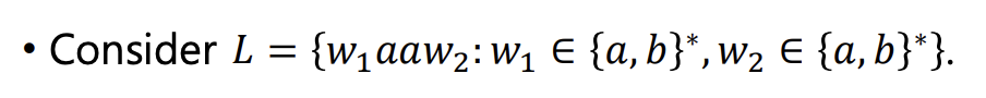 주어진 언어는 aa를 포함하는 임의의 a, b로 구성된 문자열을 문장으로 갖는다.