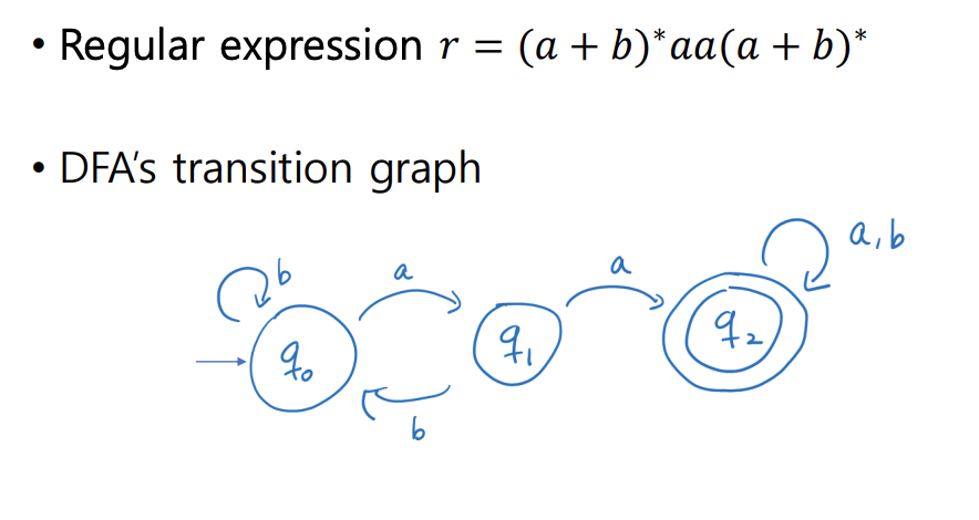 정규표현식과 DFA 로는 위와 같이 표현할 수 있다.