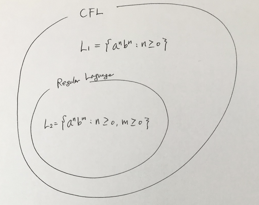 L2가 RL 임은 DFA 또는 NFA를 그려서 보일 수 있고, CFL 임은 CFG를 만들어서 보일 수 있다.