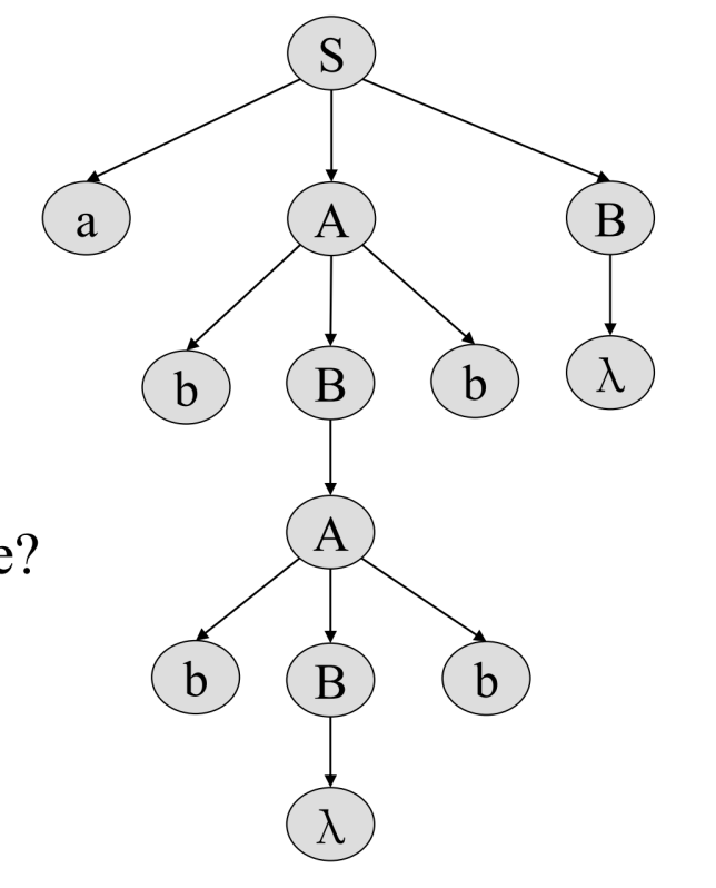 derivation tree를 만들었을 때 λ 를 제외한 모든 leaf node를 왼쪽에서부터 순서대로 읽으면 abbbb 를 읽어낼 수 있다.