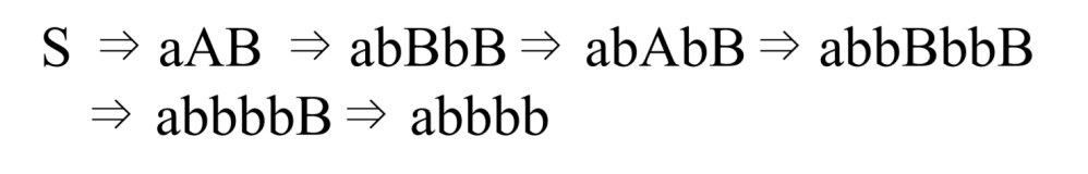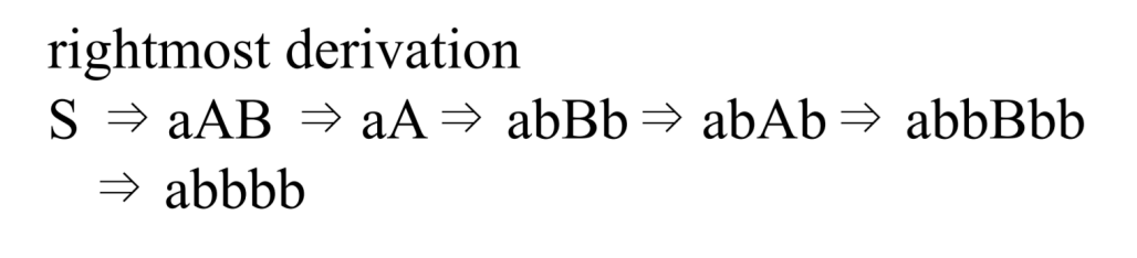 이 문법에 대해 leftmost drivation으로 abbbb를 유도해보면 아래와 같다.