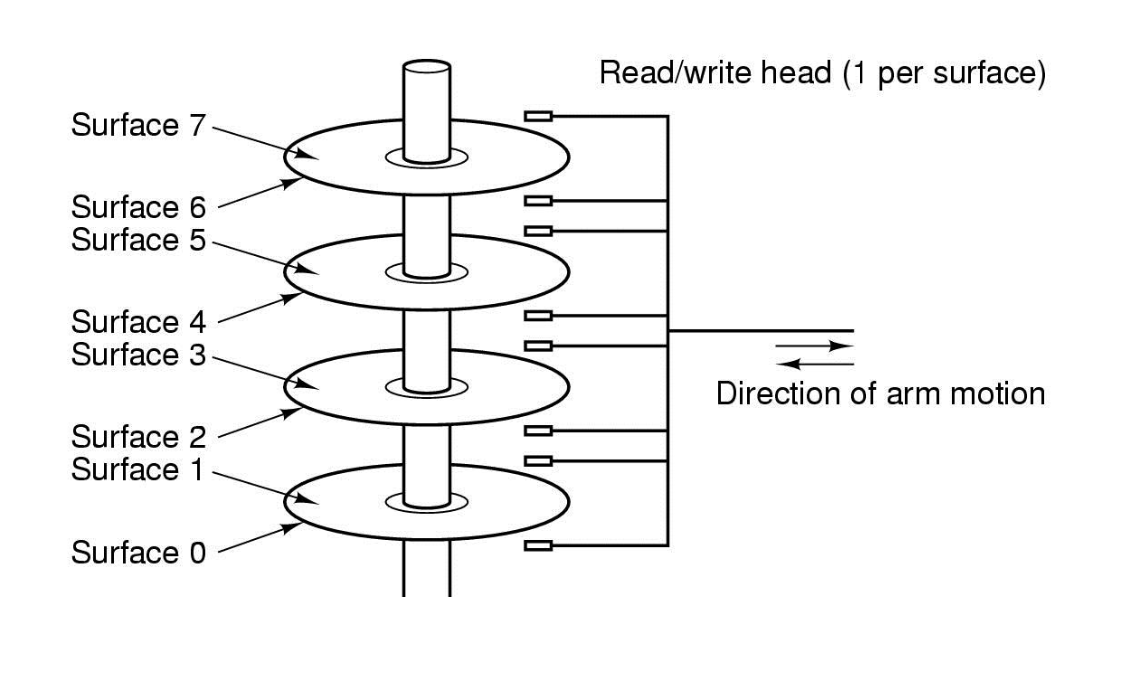 하드디스크는 위 그림과 같이 여러 원판(플래터)이 겹겹이 쌓여있는 구조로 되어있다.