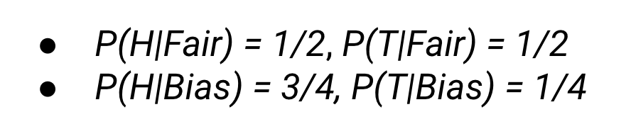 그런데 이때 동전은 '공정한 동전 = 모두 1/2 확률' 과 '편향된 동전 = 앞면이 3/4' 이 있다.