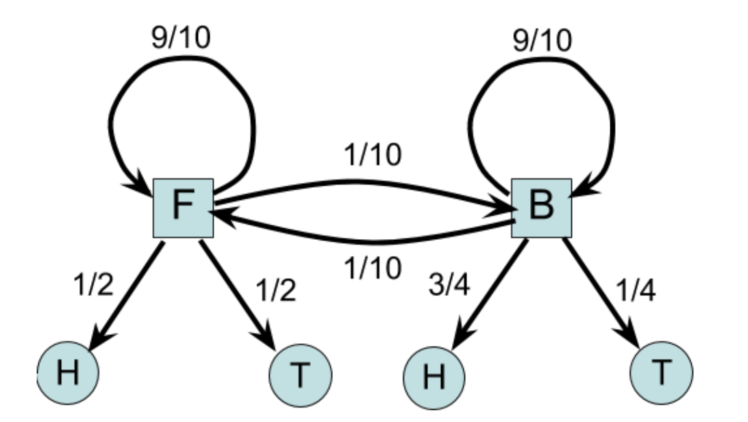 이런 카지노 문제와 비슷한 유형의 문제를 푸는 방식으로, 알파벳 심볼을 출력으로 내는 Hidden State 를 k개 가진 추상화된 기계로 문제를 모델링한다. (오토마타 생각이 난다)