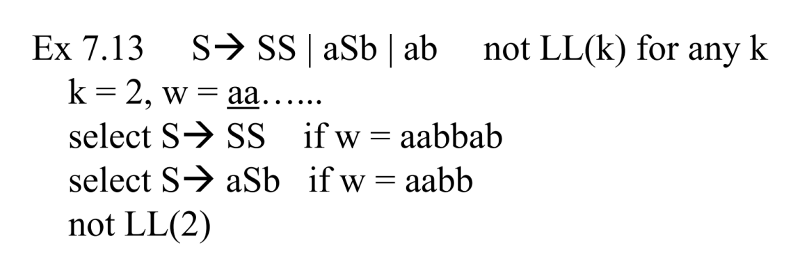 따라서 주어진 문법은 모든 k 에 대해 LL(k) 문법이 될 수 없으므로, LL-Grammar 가 아니다.