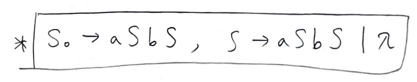 이 문법은 CFG로서, 이 문법이 나타내는 언어는 { aⁿbⁿ : n ≥ 1 } 이다.