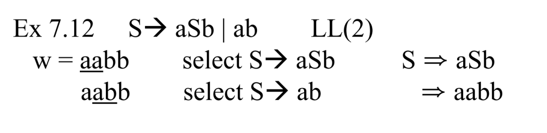 aa 를 보는 경우, aSb / SS 중에 선택할 수 없으니 LL(2) 는 아니다.
