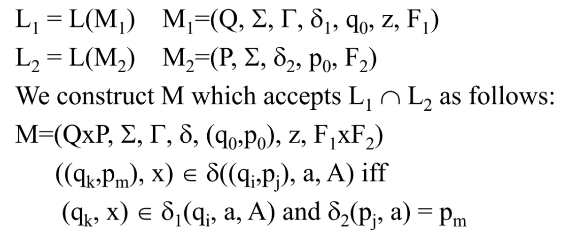 자세한 증명은 해주시지 않았지만, L1은 NPDA를 만들고, L2는 DFA를 만든 다음 두 기계를 잘 조합하면 그 기계는 NPDA가 나온다고 한다.