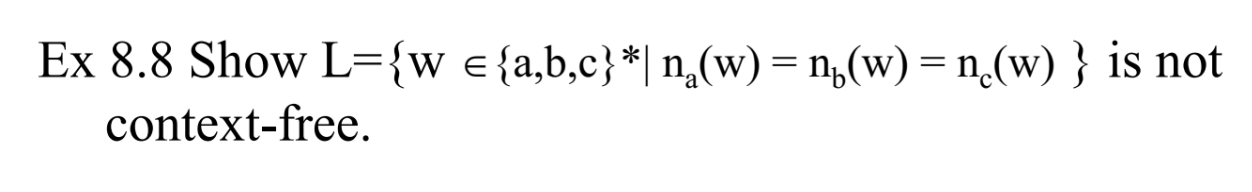 사실 펌핑렘마를 활용하면 abc 순으로 나열하고 각각의 개수가 같은 문장을 제시한 다음에 이거에 대해 펌핑렘마 해보라고 하면 절대 성공할 수 없어서 not CFL을 증명할 수 있지만, 다른 방법으로도 증명해보면