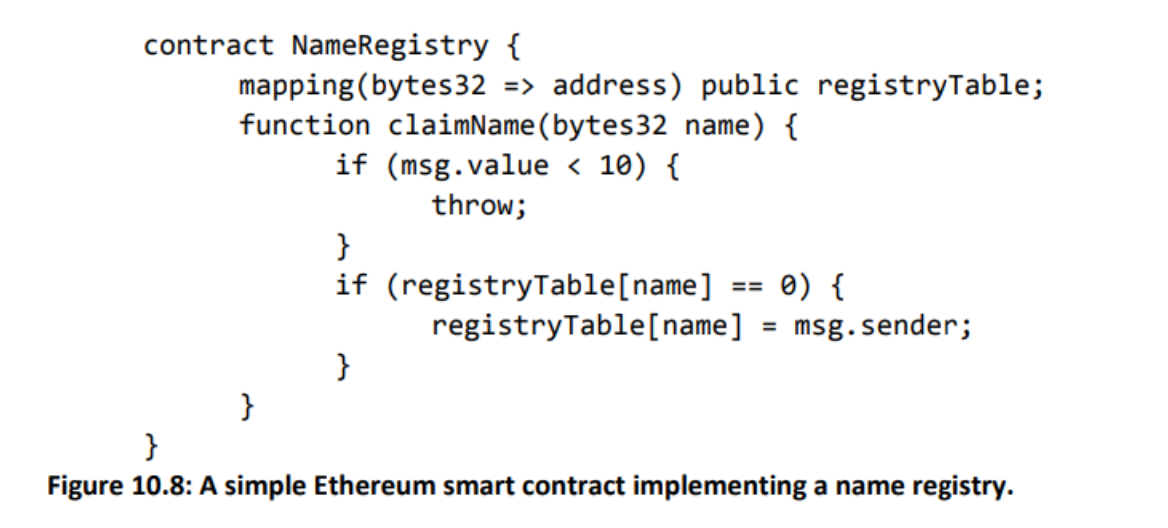 이 그림은 solidity 라는 언어로 작성한 smart contract 예시를 보여준다.