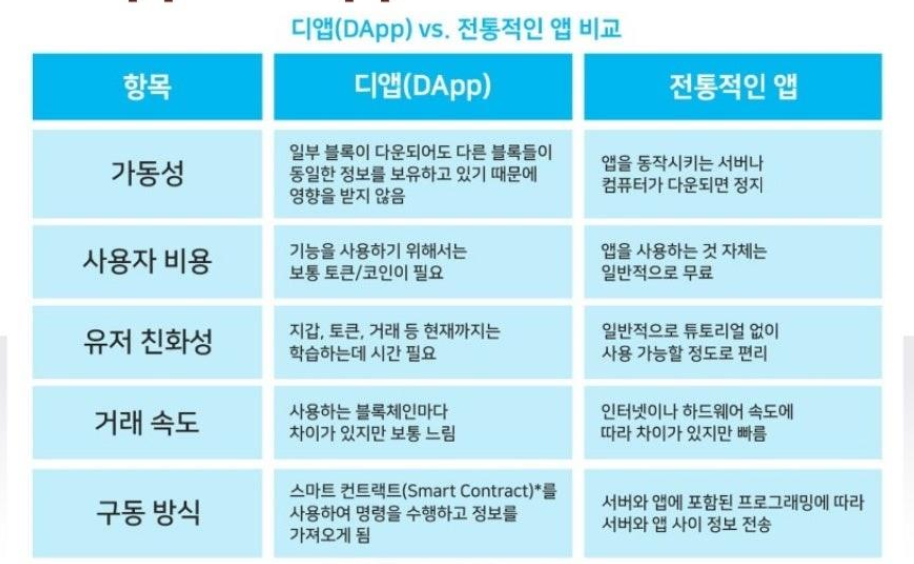 거래 속도의 경우, 디앱이 전통적인 구조보다는 느리다. 하나의 정해진 서버가 없기 때문이다. (병목도 없지만 일반적으로도 느리다)