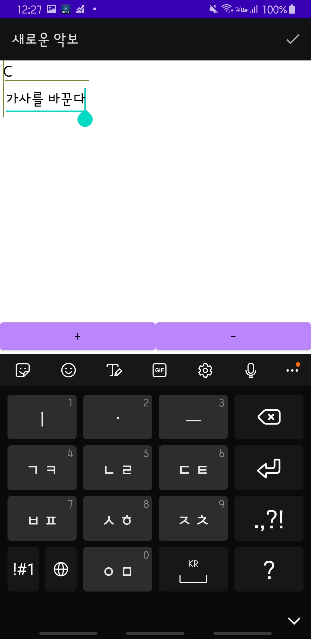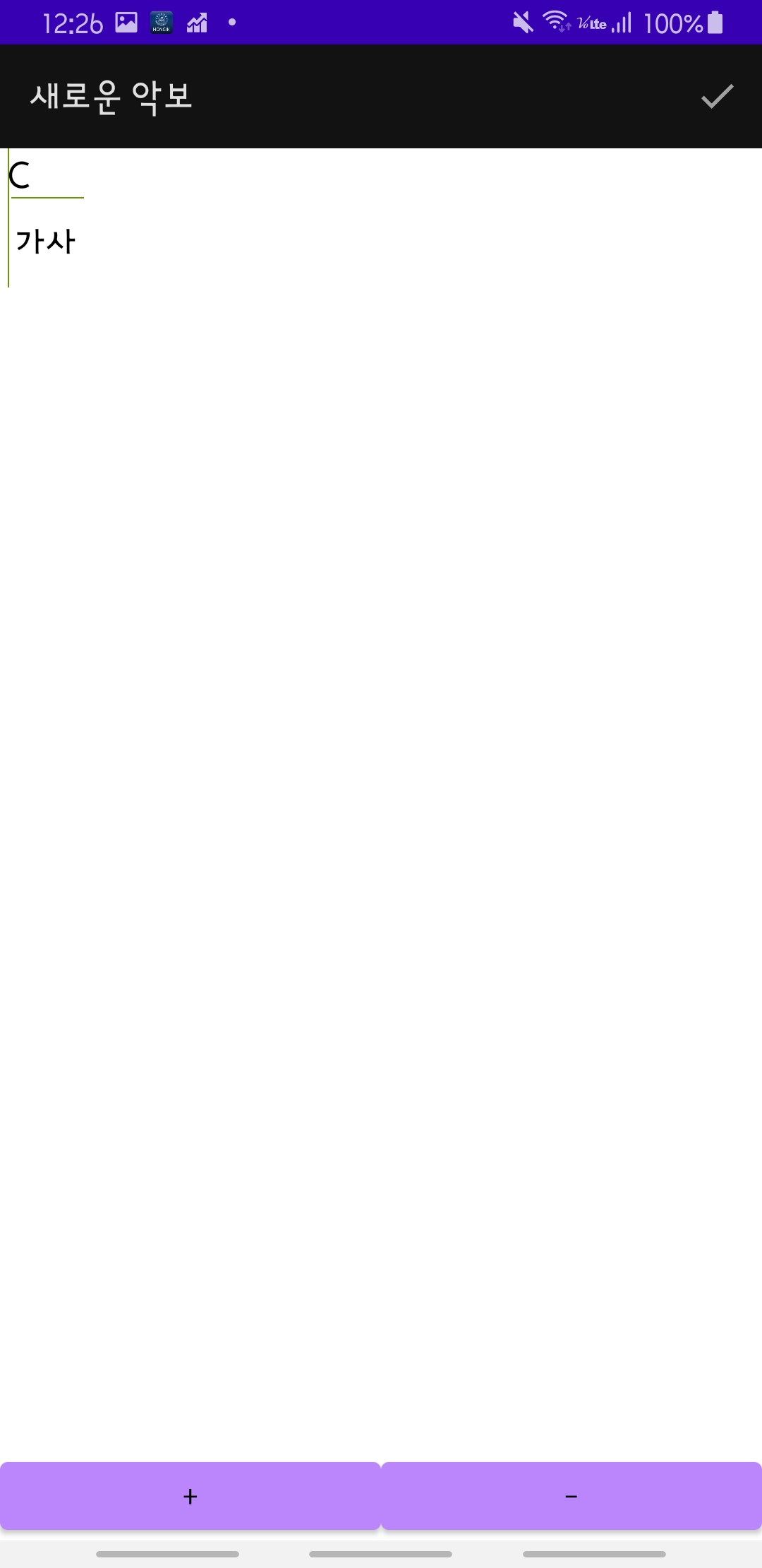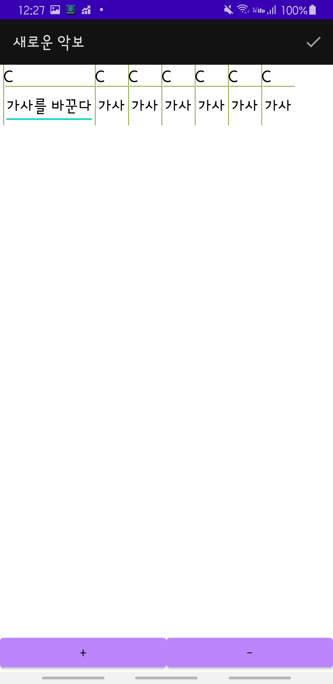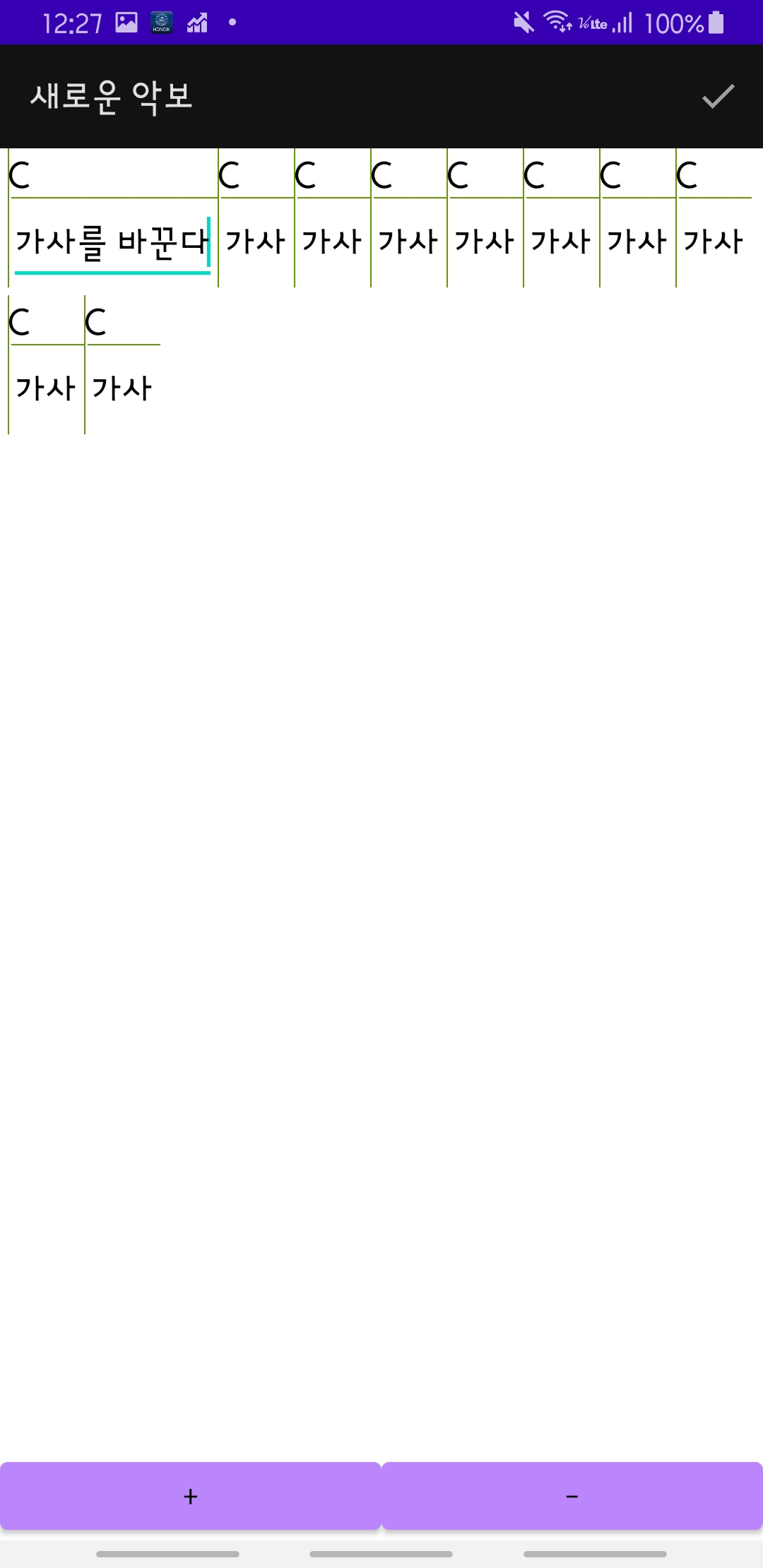 + 버튼을 누르면 다음처럼 코드와 가사를 입력하는 칸이 추가된다.