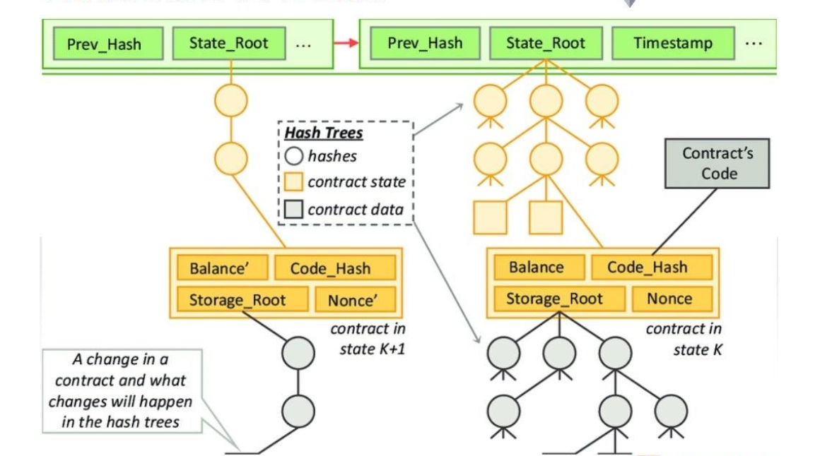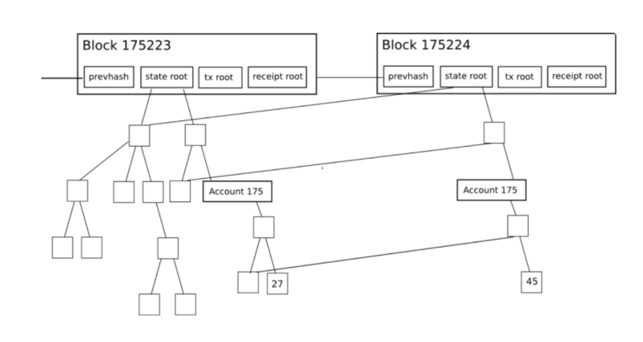 매번 이 모든 상태를 다 저장하는 것은 부담스러울 뿐 아니라, 이 블록에 포함된 트랜잭션에 의해서 바뀐상태는 전체 상태 중에서 극히 일부일 것이다.