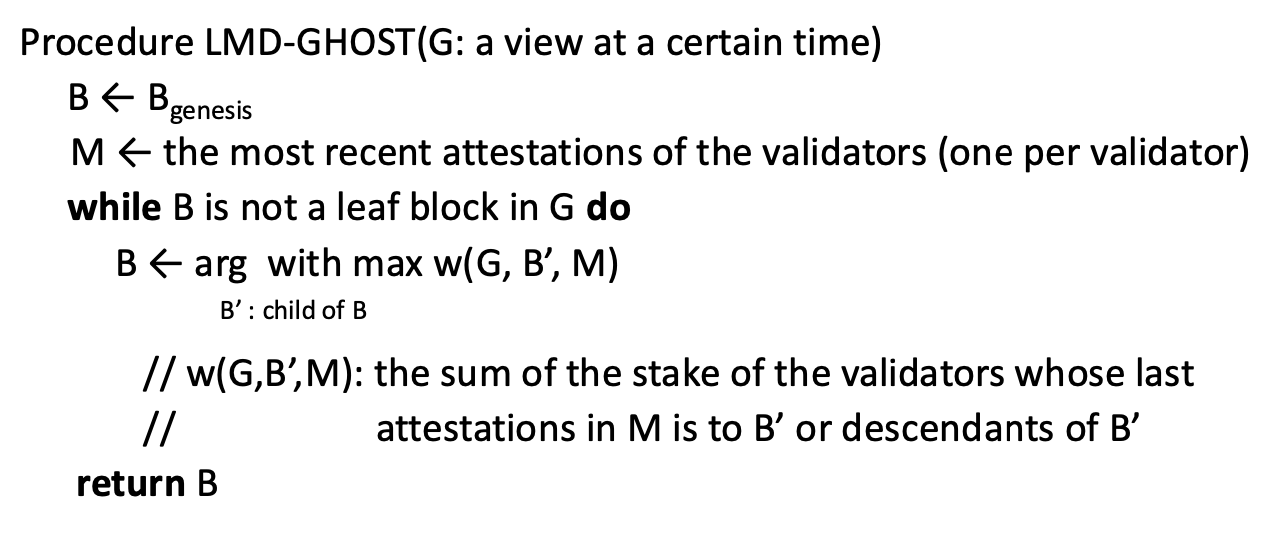 이때 이더리움은 LMD-GHOST, Lastest Message Driven 어떤 검증자가 여러개의 메세지를 보냈다면 가장 최근에 받은 투표만을 고려한 GHOST 방법으로 포크를 선택한다.
