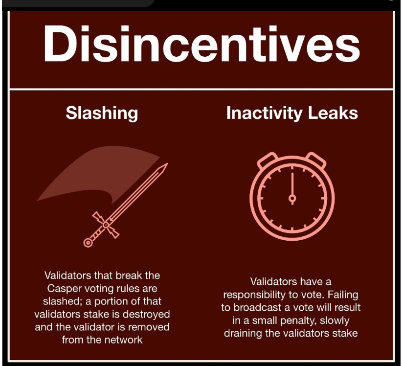 이 과정에서 나쁜 행동을 하는 경우 (검증자, 투표 노드 모두) 자신이 담보로 맡긴 이더리움을 잃는 패널티를 받는다.