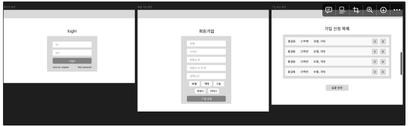 나는 연습실 예약과 로그인/회원가입 와이어프레임을 맡았다.