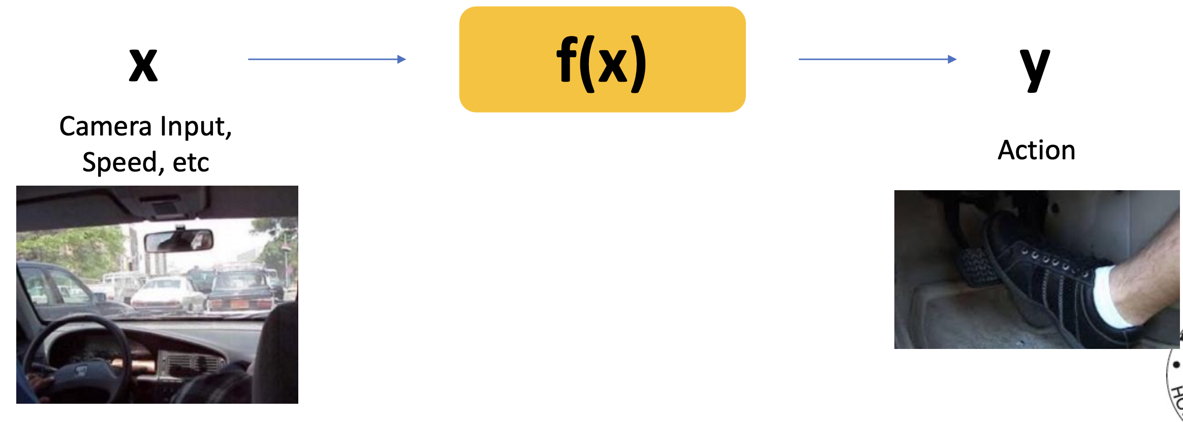 자율 주행 관점에서는 라이더가 읽어들인 주변 정보를 입력으로 하고, 자동차의 동작 제어를 출력으로 하는 함수를 생각할 수 있다.