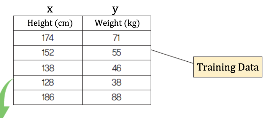 위와 같은 키-몸무게 데이터가 있다고 해보자.