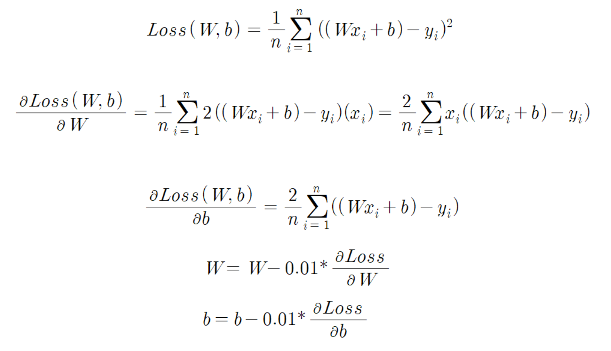 먼저, 선형 회귀 문제에서 경사하강법을 사용하는 일반적인 공식은 아래와 같이 계산할 수 있다.