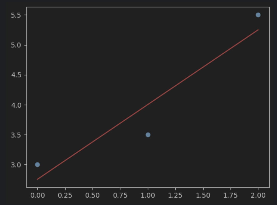 한번 간단한 예시로, (0, 3) (1, 3.5), (2, 5.5) 3개 점에 대한 선형 회귀 문제를 경사하강법으로 풀어보자.
