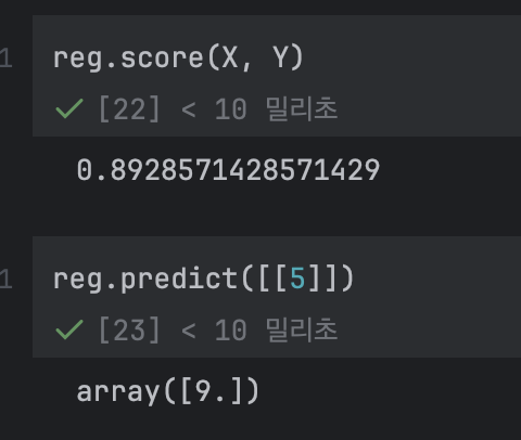 5라는 입력값을 넣어보면 9 라는 예측값이 나온다.