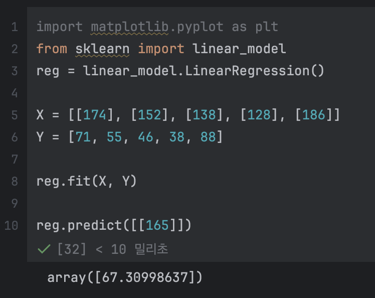 먼저 사이킷런 라이브러리에서 선형회귀 모델을 가져온다.
