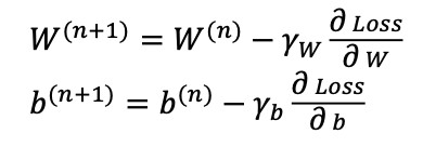 기존에 살펴본 경사하강법의 W, b 값 수정 공식은 위와 같았다.