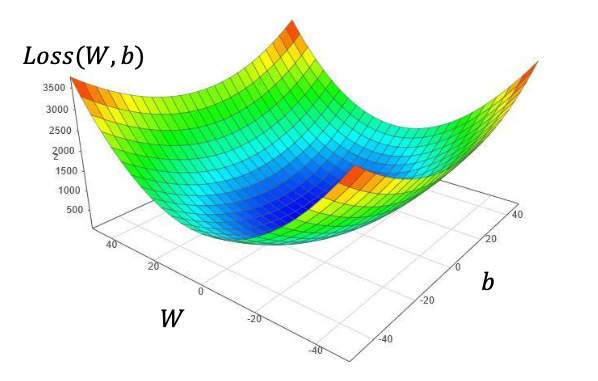 Loss 가 제일 작은 함수식의 W, b 값을 찾는 것이다.