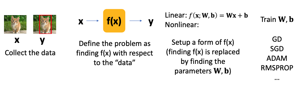 기계학습이 중간에 크게 발전하지 못 했던 것도 '함수의 형태를 정의'하는 단계에서 어떤 함수를 사용해야 할 지 몰랐기 때문이었다.