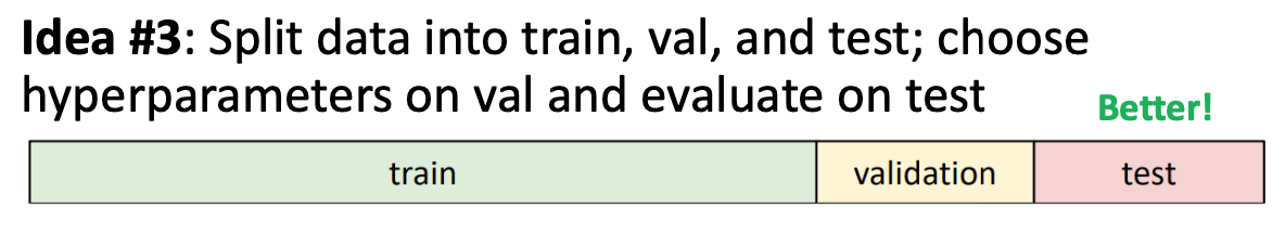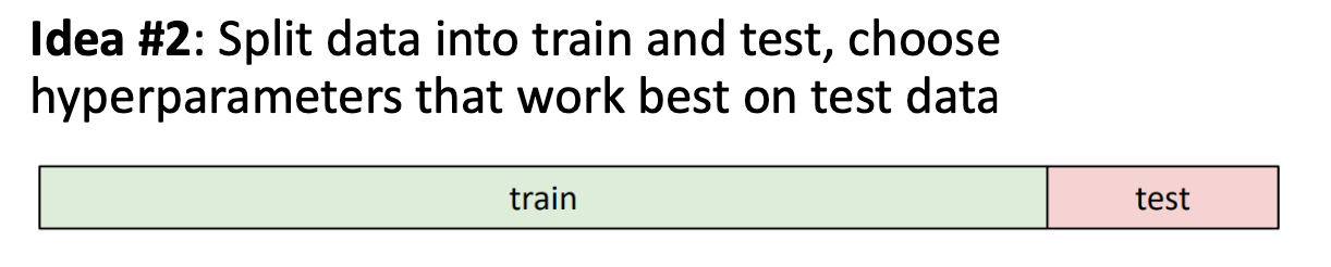 그런데 이 방법은 학습 데이터와 하이퍼 파리미터를 판별하는데 사용한 데이터가 동일하기 때문에 좋은 방법이 아니다.