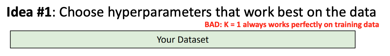 제일 간단하게는 하이퍼 파라미터를 세팅하고 기존에 모델을 학습시킬 때 사용할 모든 데이터 셋을 넣고 학습시켜서 어떤 하이퍼 파라미터가 좋은지 판단할 수 있다.