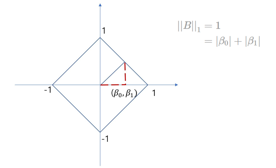 L1-norm 을 시각화하면 이렇게 마름모 형태가 나온다.