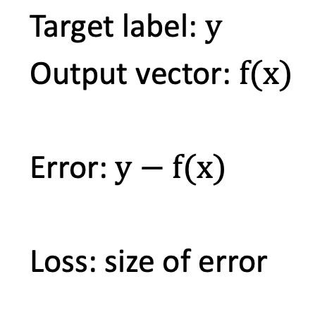 이 에러 벡터의 크기를 loss 로 볼 수 있다.
