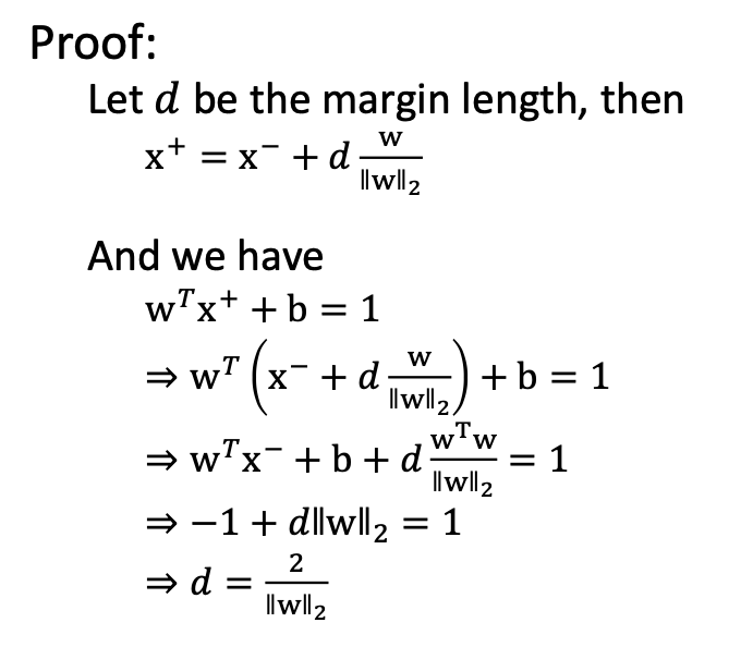 이 식을 d 에 대해 정리하면 마진값을 w로 표현할 수 있다.