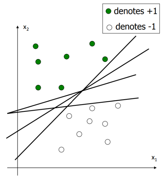 그런데 데이터를 구분하는 선은 위 그림과 같이 다양하게 존재한다.