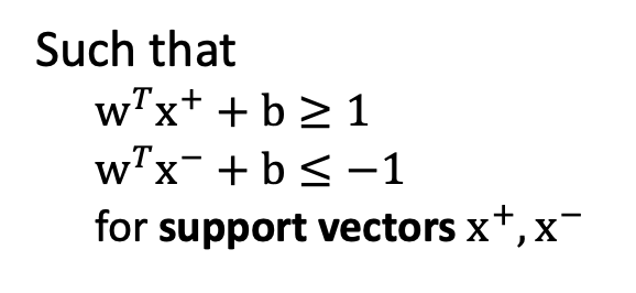 이 단위벡터에 우리가 구하는 마진값을 곱해주고, 그 간격만큼 x- 직선을 평행이동한 직선이 x+ 직선임을 이용하여 식을 세울 수 있다.