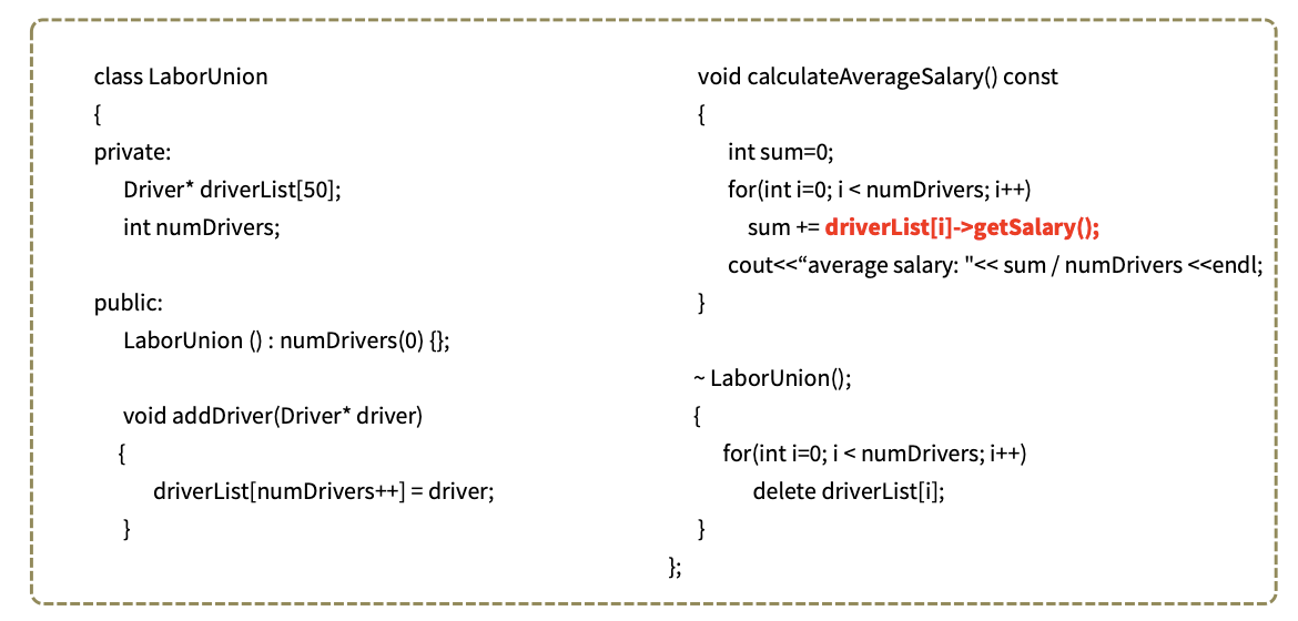 회사의 모든 직원의 월급 합을 계산할 때 각각의 taxi driver 객체가 가진 getSalary() 함수를 통해 가져온 월급으로 계산한다.
