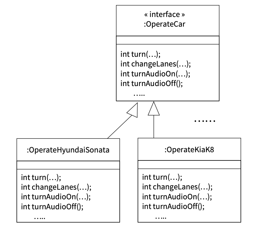 그리고 각 제조사별 자동차는 이 인터페이스에 맞추어 실제 동작을 구현한다.