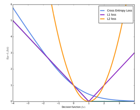 그래서 이렇게 그래프를 합쳐보면 Loss 함수를 어떤 것을 사용하는지에 따라 오차에 따른 페널티 정도가 달라진다.