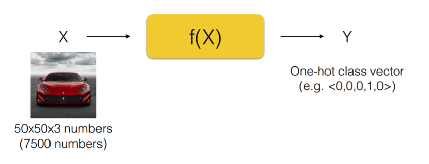 위 그림에서는 주어진 이미지가 자동차 이미지라면 5가지 종류 중 4번째 종류에 해당하여 <0, 0, 0, 1, 0> 이라는 응답을 내보냈다.