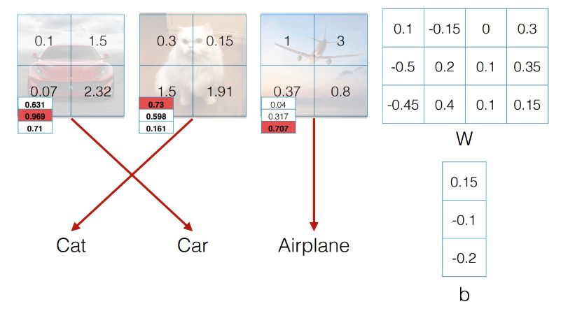 잘 학습이 된 모델에 주어진 이미지를 데이터로 넣으면 이렇게 연산 결과 f(x; W,b) 로 나온다.
