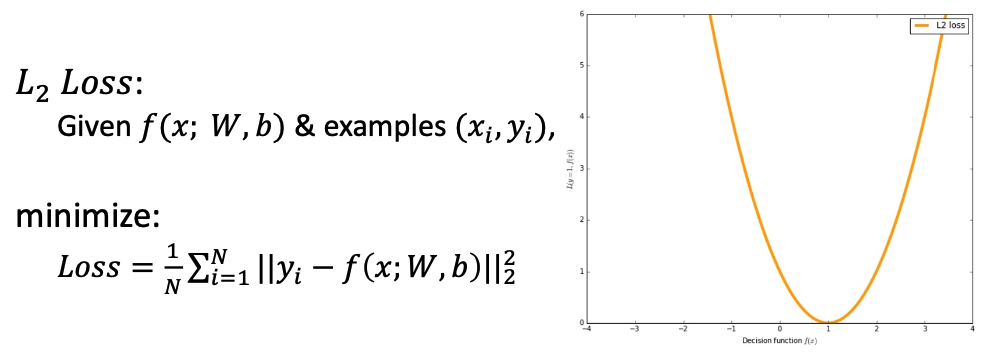 f(x; W, b) 와 y 벡터의 L2 Norm 을 모두 더해서 평균을 낸 것이라고도 할 수 있으며,