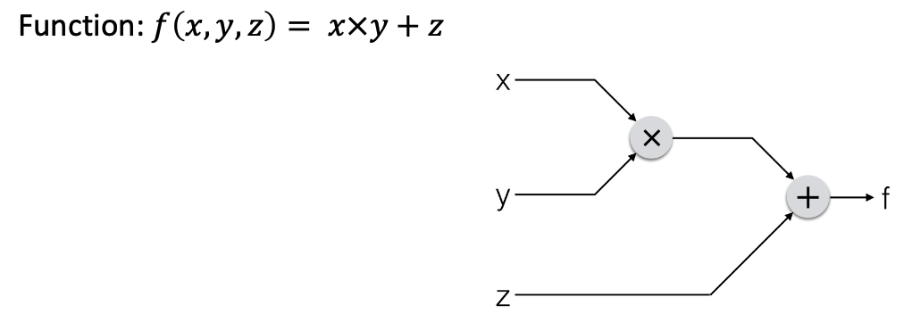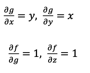 이때 위 그림과 같이 g는 x, y 에 대해서 미분할 수 있고, f 는 g와 z 에 대해 미분할 수 있다.