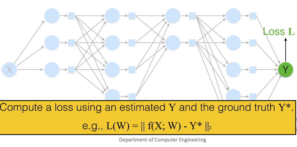Y 라는 추론 결과값을 실제 값은 Y* 와의 차이를 구해서 L(W) 를 정의하고 (위 식에서는 L2-norm 사용)