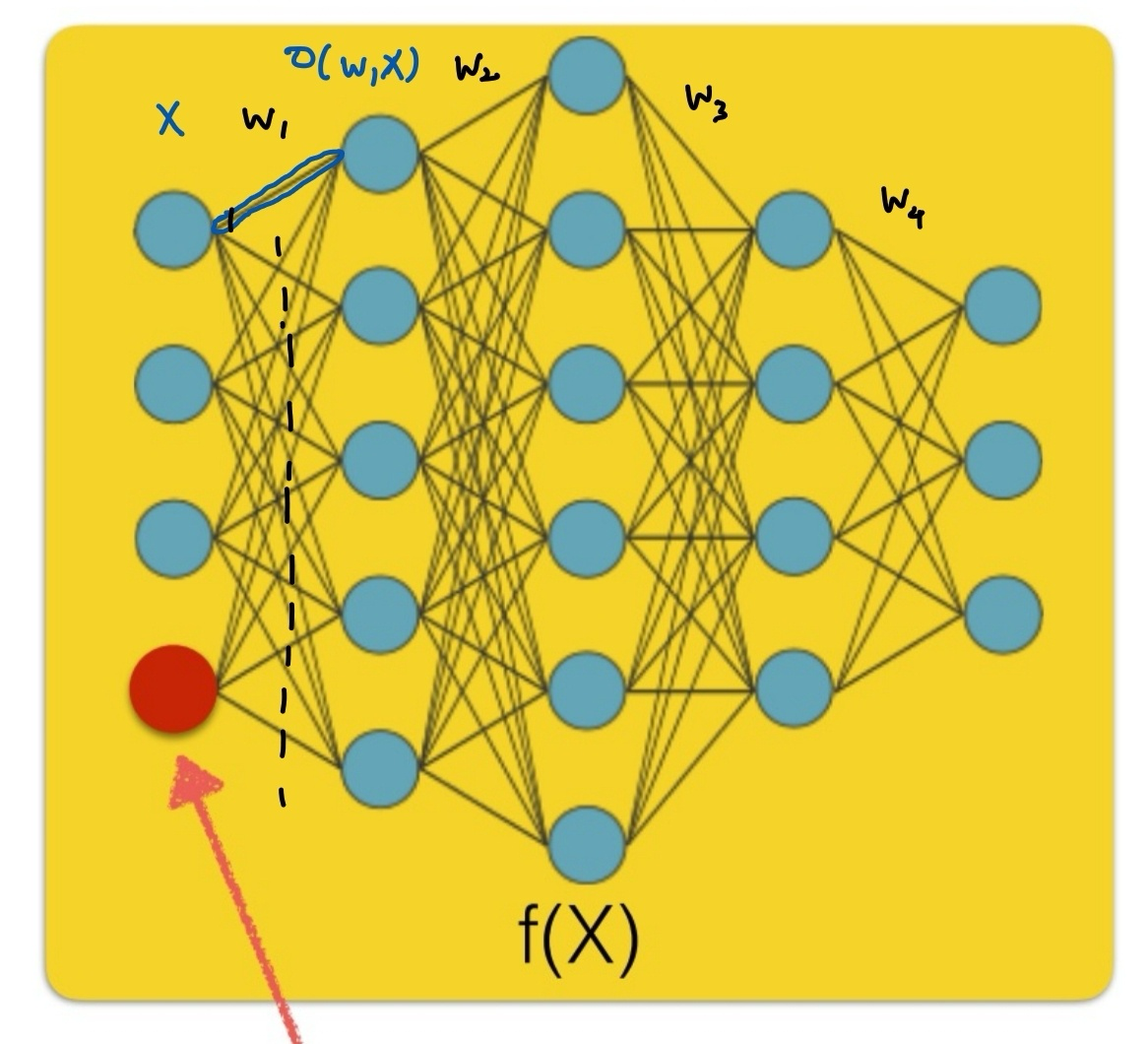 각각의 함수에 대해서 f(x; w1), g(x; w2), h(x; w3) 가 있어서 이 함수들이 중첩되어 뉴럴 네트워크를 형성한다면 우리가 학습할 대상은 w1, w2, w3 와 같은 각 함수의 계수가 된다.